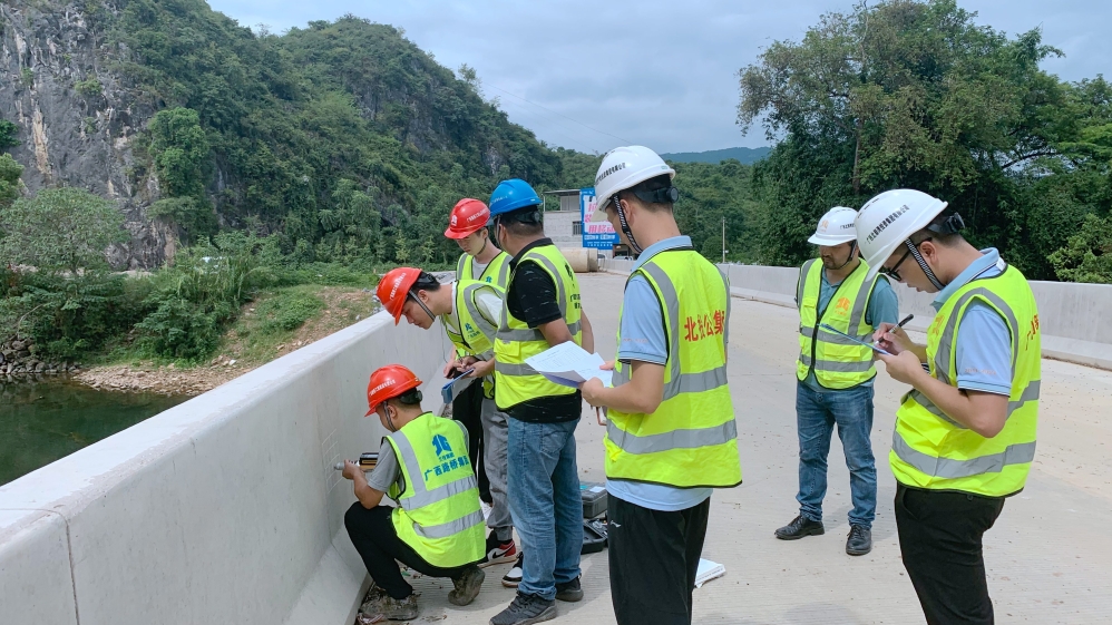為做好G357灌陽洞井至潮田公路(以下簡稱灌潮路)交工前各項(xiàng)準(zhǔn)備工作,確保項(xiàng)目順利交工,8月14日,北投公路集團(tuán)桂林片區(qū)項(xiàng)目建設(shè)辦結(jié)合第三方檢測單位提出的建議及預(yù)驗(yàn)收方案,組織開展交工預(yù)驗(yàn)收檢查工作。